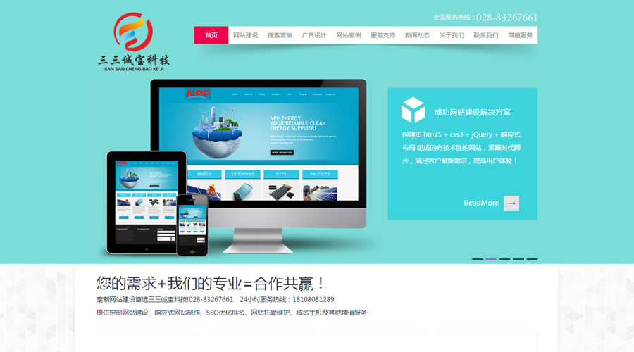 四川·成都三三诚宝科技有限公司,提供定制网站建设,响应式网站制作,微信公众号开发,顶级域名注册,服务器空间租售,广告策划设计等服务。凝集了由互联网行业专业人员组成的一支具有高素质、高技能的策划、设计、技术和售后服务团队,我们用丰富的市场经验与敏锐的洞察力,为客户提供更专业、更完善的互联网定制服务。